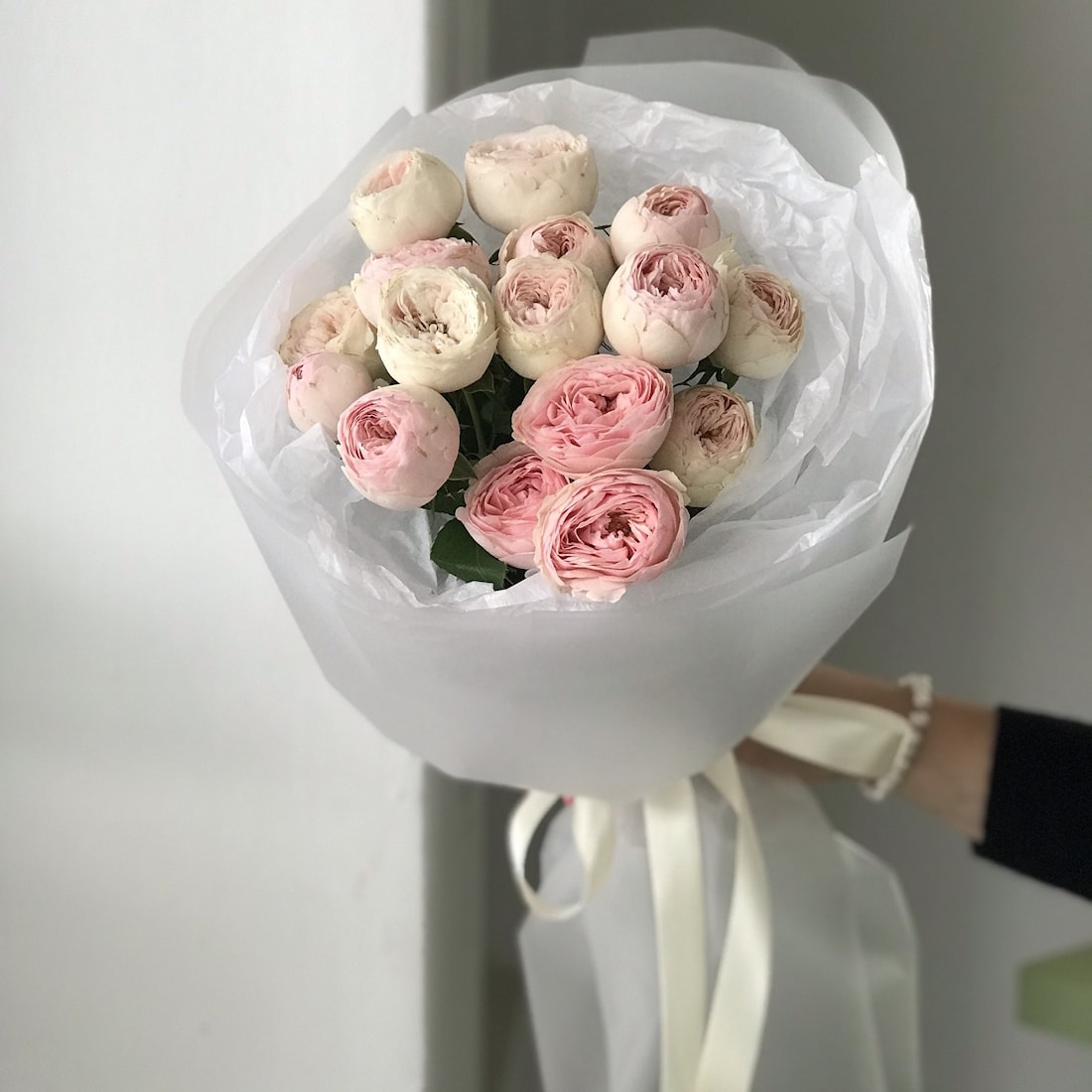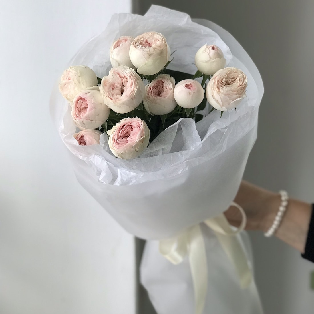 №0 — 9 кустовых пионовидных роз Mansfield Park 🔑 Открывает любые двери! Букет с характером, изысканный и при этом доступный. Настоящий бестселлер сезона.