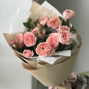 №0 — 9 кустовых пионовидных роз Mansfield Park 🔑 Открывает любые двери! Букет с характером, изысканный и при этом доступный. Настоящий бестселлер сезона.