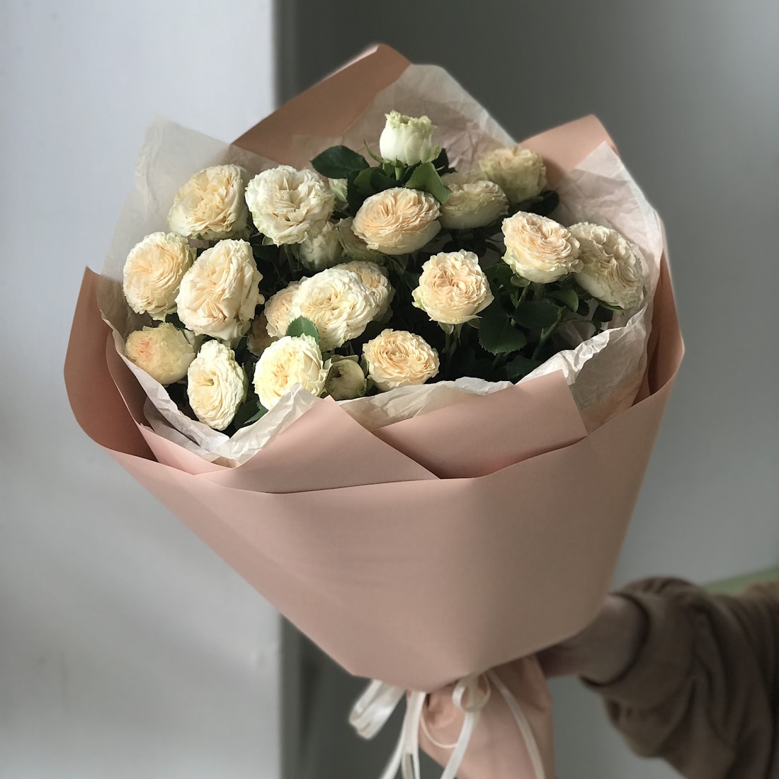 №0 — 9 кустовых пионовидных роз Mansfield Park 🔑 Открывает любые двери! Букет с характером, изысканный и при этом доступный. Настоящий бестселлер сезона.