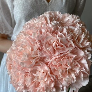 Изысканный букет из 15 персиковых гвоздик — идеальный выбор для нежной и романтичной невесты. Персиковый оттенок символизирует тепло, искренность и душевную гармонию, подчеркивая утонченную красоту и легкость образа в день свадьбы.