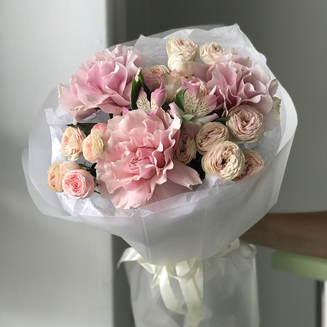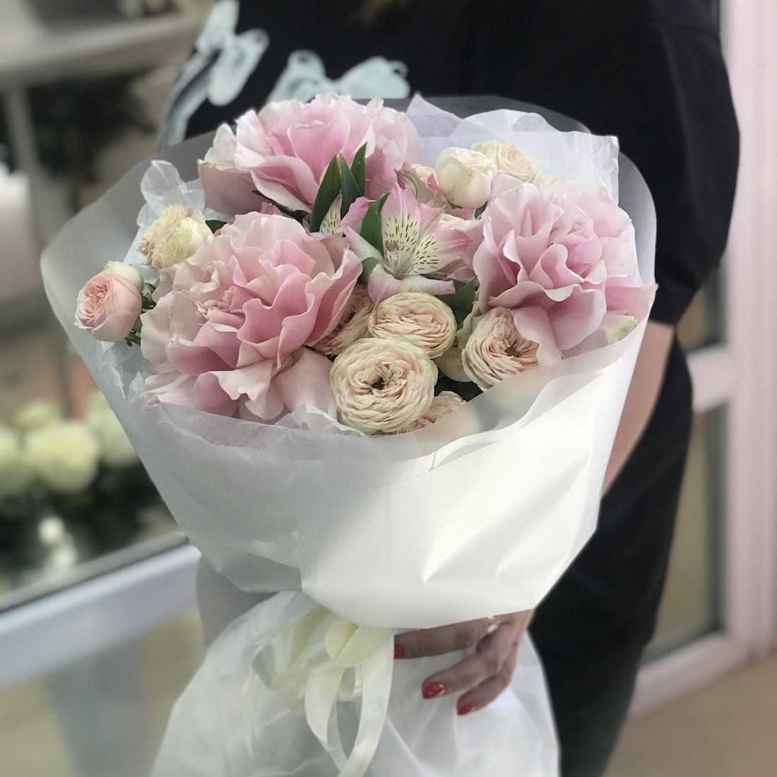 Стильный и нежный букет, в котором соединяются 3 французские розы премиального качества, 3 кустовые розы и трепетная альстромерия — это элегантное решение для любого повода. Французские розы славятся своим изысканным внешним видом и ароматом, кустовые розы добавляют объёма и уюта, а альстромерия вносит лёгкость и романтичность.