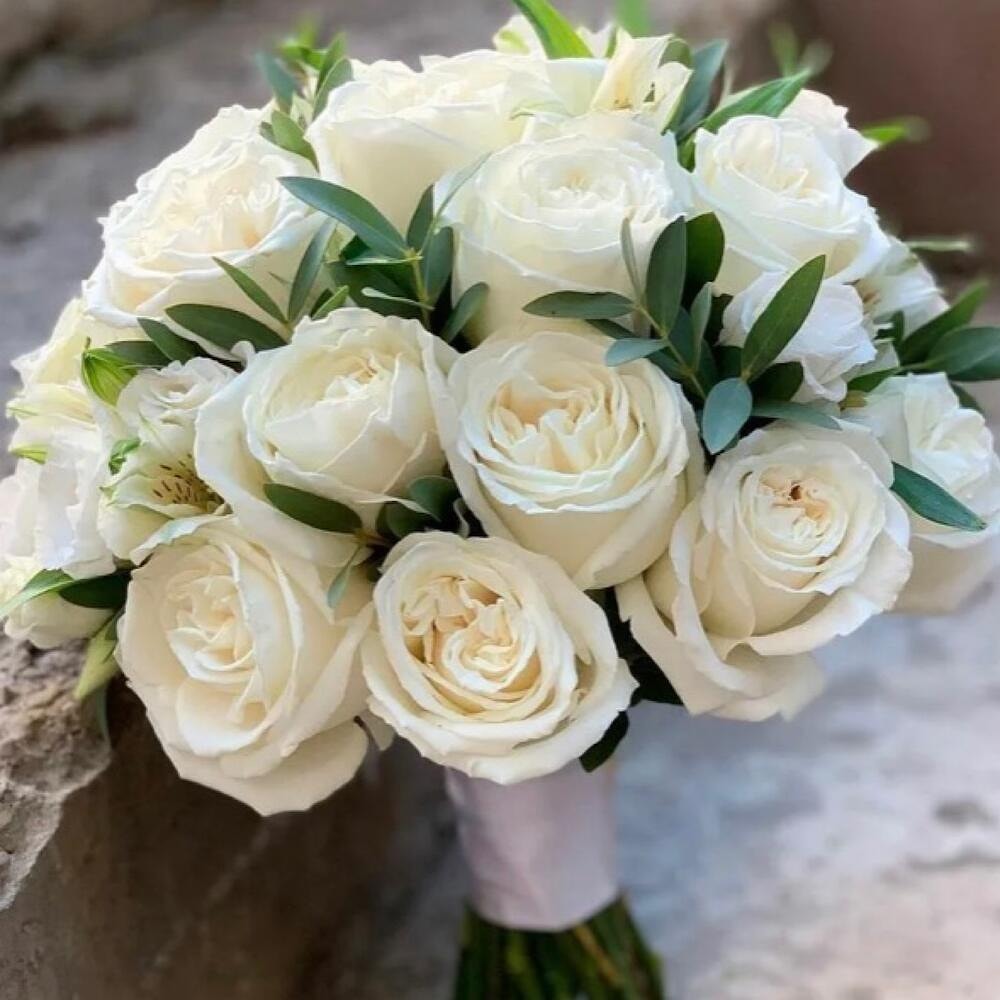 Свадебный букет невесты из роз "Роза и Эвкалипт"    купить в Минске