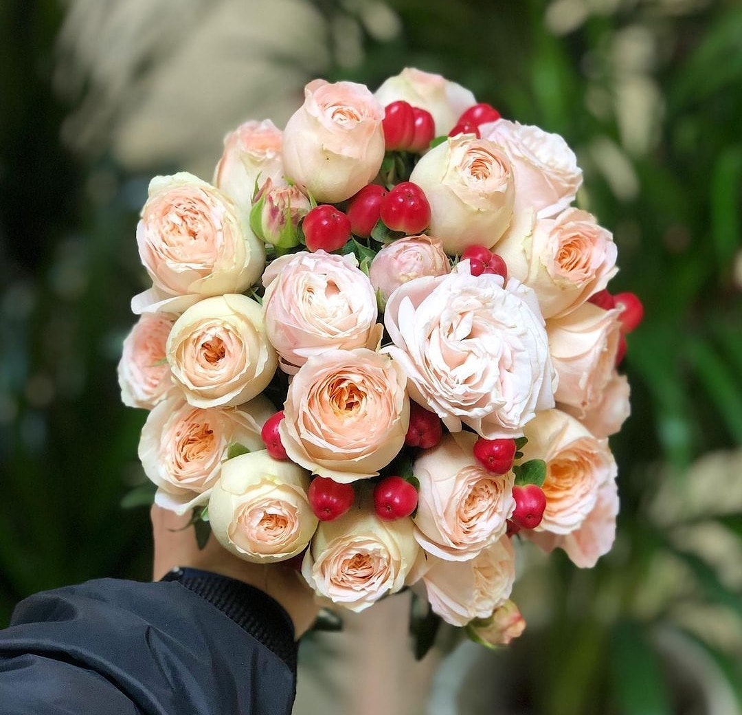 №0 — 9 кустовых пионовидных роз Mansfield Park 🔑 Открывает любые двери! Букет с характером, изысканный и при этом доступный. Настоящий бестселлер сезона.