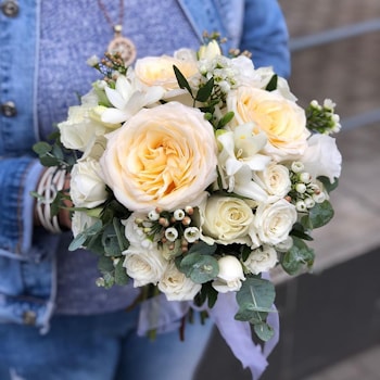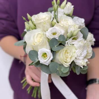 Для оформления букета невесты покажите флористу фото своего платья и модель прически. Также будет полезно захватить с собой несколько фотографий понравившегося цветочного оформления свадебного зала. Ориентируясь на предоставленные данные, флорист составит вариант декораций, соразмерный вашему бюджету.