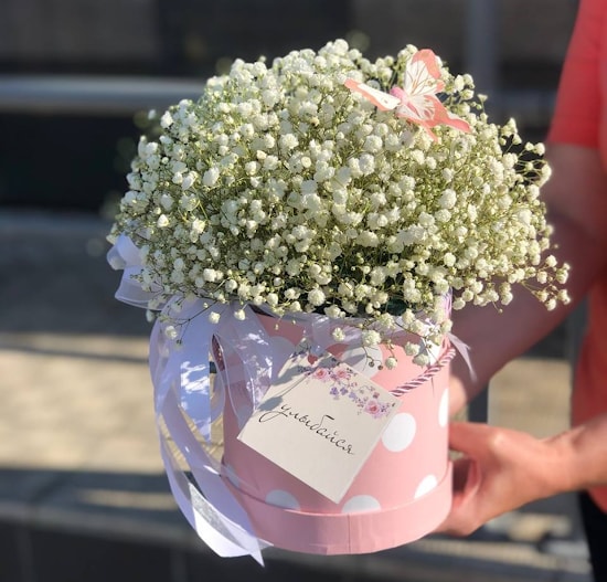 Цветы в коробке "Гипсофила" с доставкой в Минске – это композиция из нежной гипсофилы в коробке, как облако снега. Коробочка из гипсофилы очень долго стоит и красиво засыхает и после высыхания гипсофила прекращается в сухоцвет, не теряя формы и цвета.