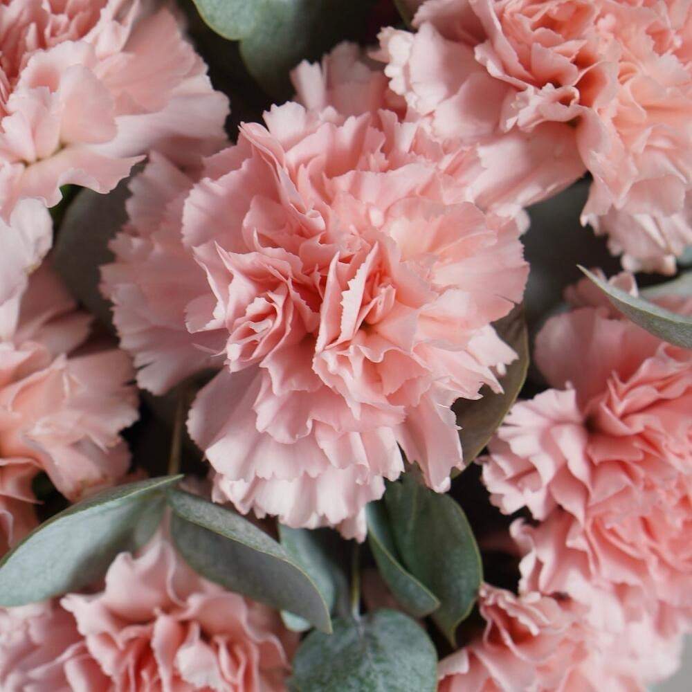 Состав: розовые диантусы - 15 шт, эвкалипт.