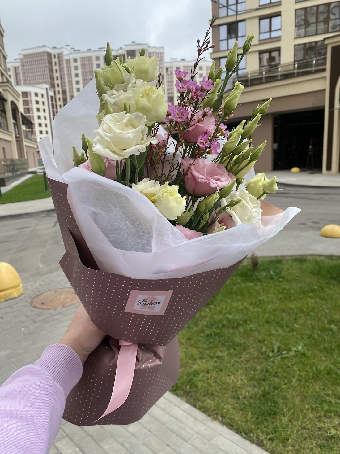 Букет из эустомы и хамелациума