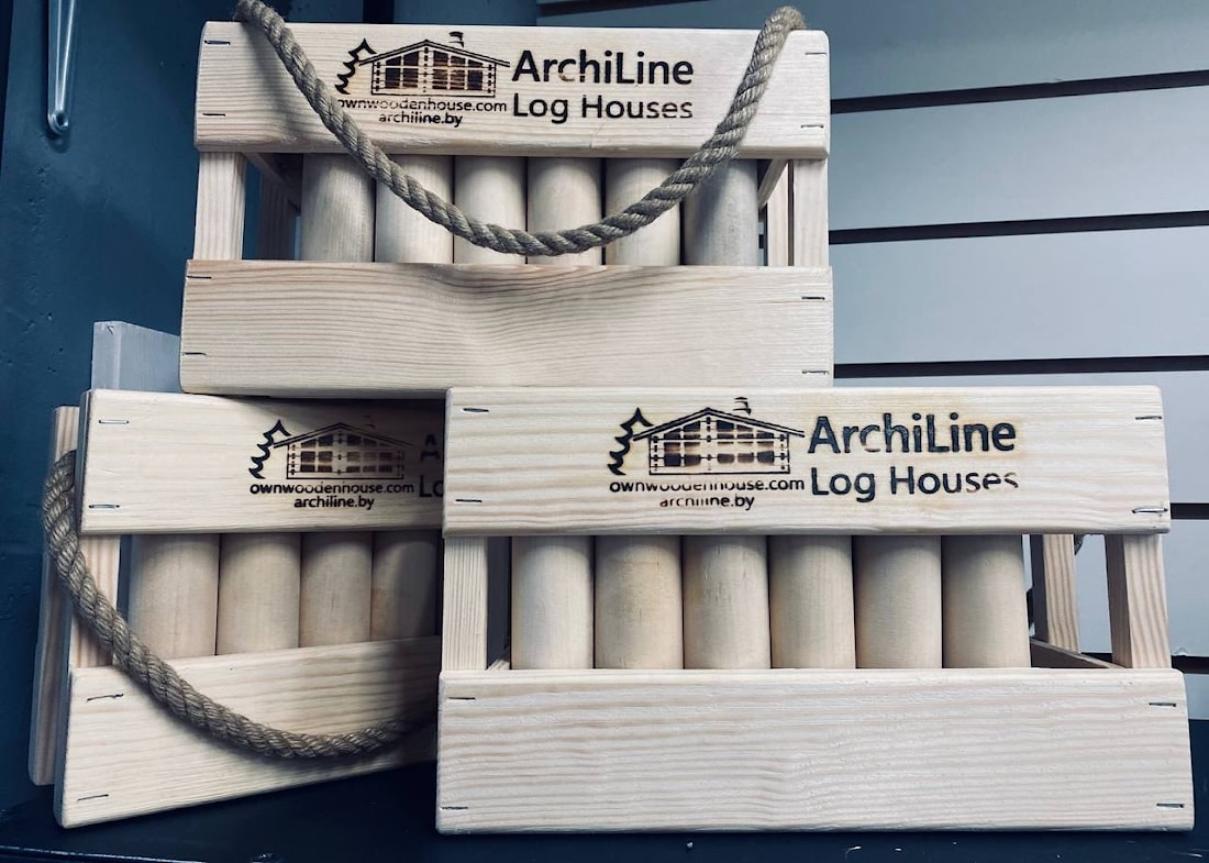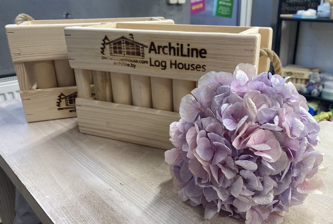 – Оригинальная деревянная коробка с верёвочной ручкой.