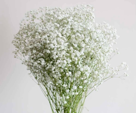 Гипсофила — ветвистое растение с множеством мелких белых соцветий без запаха.
