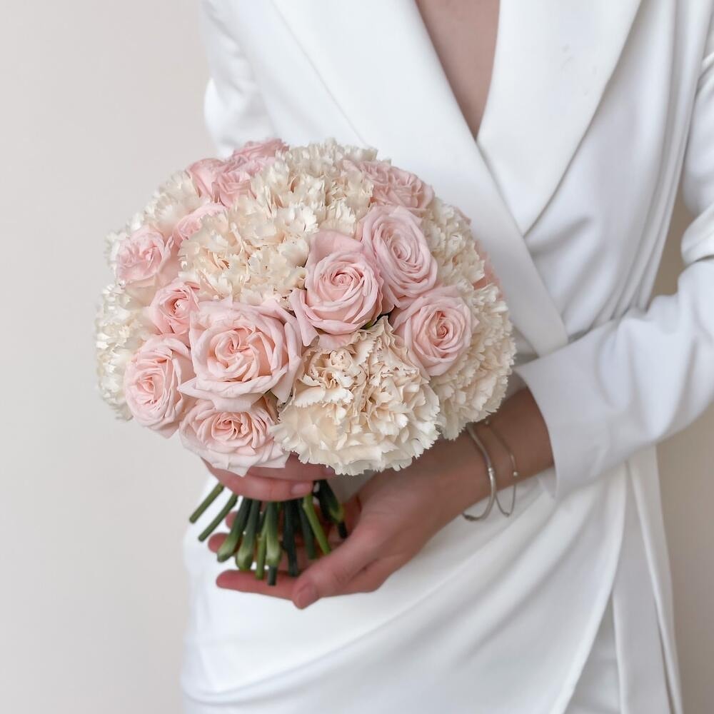 Букет невесты с диантусами и розами Леди Бомбастик — элегантность, утонченность и нежность в каждом лепестке