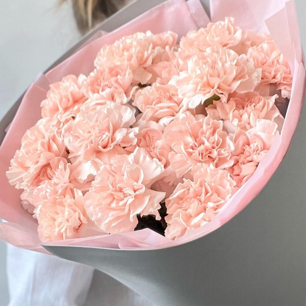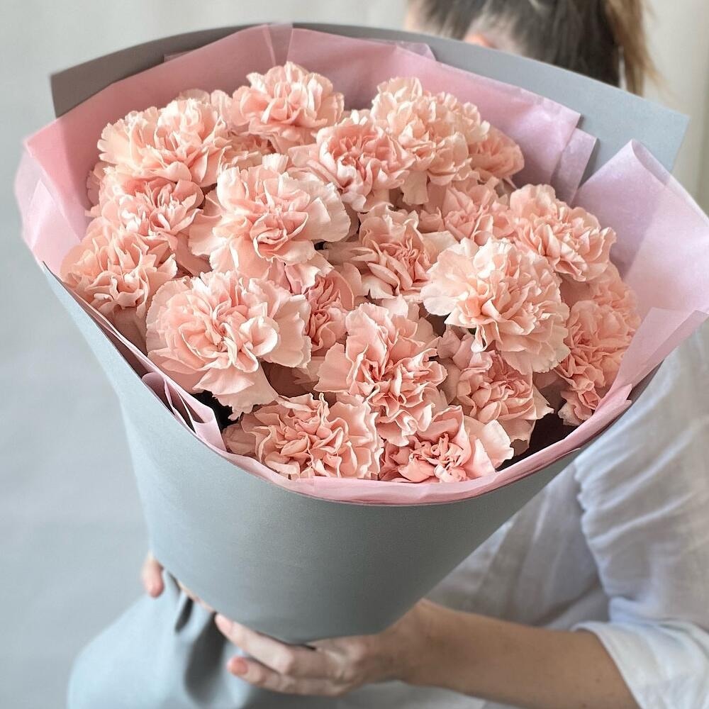 - Отличное сочетание яркой гвоздики и современной упаковки в такую пасмурную погоду.