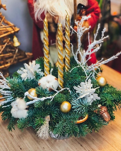 Так же накануне Нового года, принято ставить дома хвойное дерево – натуральное, или искусственное. Украшать его различным декором. Можно использовать целое дерево, или отдельные ветки. Делать из них венки и прочие композиции.