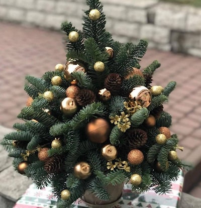 Мини елочка – это все та же самая ель. Если у вас нет желания, или возможности поставить полноценную елку дома, то мини формат будет самым идеальным вариантом. Ее очень легко собрать самому, или же купить в нашем магазине на заказ. Наши дизайнеры-флористы обязательно учтут ваши пожелания, вкус, ну и конечно же бюджет.