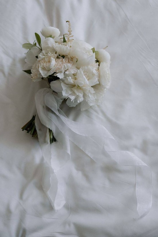 Этот свадебный букет создан для тех, кто ценит элегантность и изысканность. Он состоит из нежных пионов, изысканных эустом и прекрасных гвоздик, которые вместе образуют неповторимое сочетание цветов. Добавление светло-зеленых листьев эвкалипта создает спокойную и расслабляющую атмосферу.