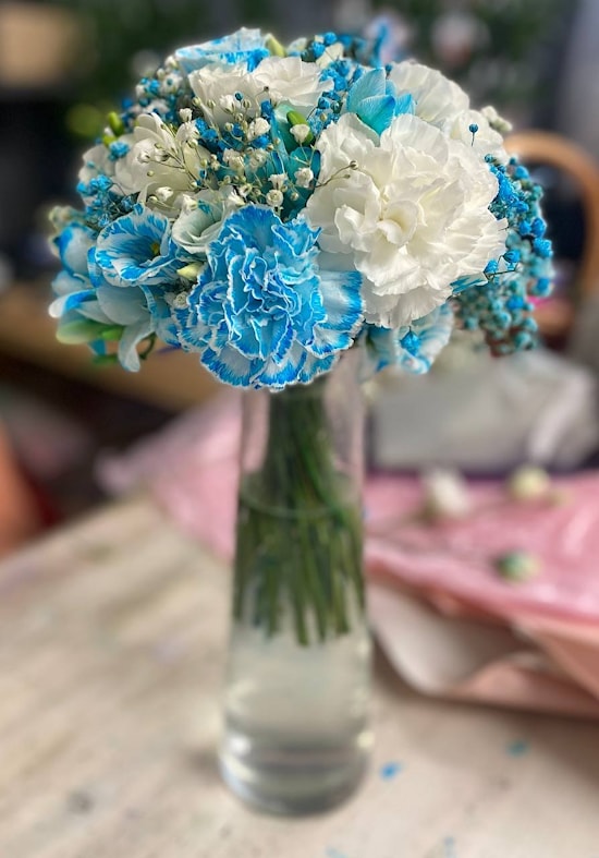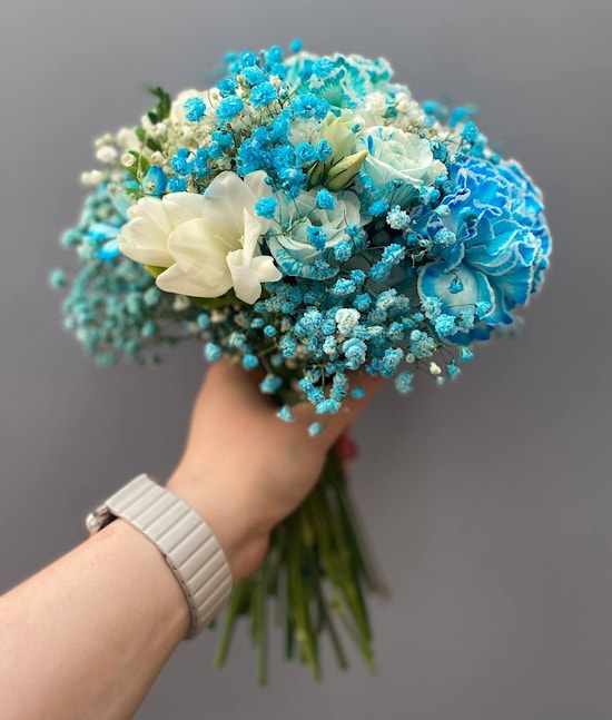 - Букет "Небесный" - это настоящее произведение искусства, созданное с любовью и заботой нашими опытными флористами. Он сочетает в себе нежные оттенки небесного голубого и белоснежных цветов, символизируя чистоту и вечную любовь. Каждый цветок в этом букете выбран с особым вниманием к деталям, чтобы создать волшебную атмосферу и уникальность вашего события.