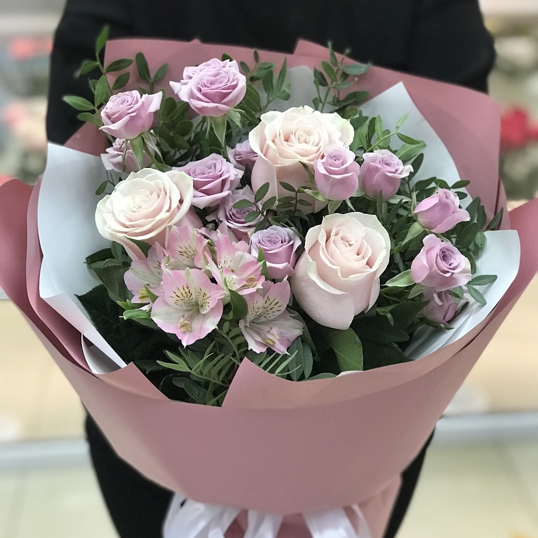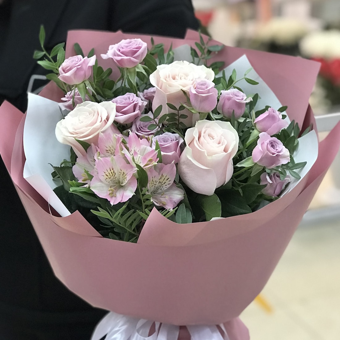 Состав: роза, кустовая роза, альстромерия, зелень