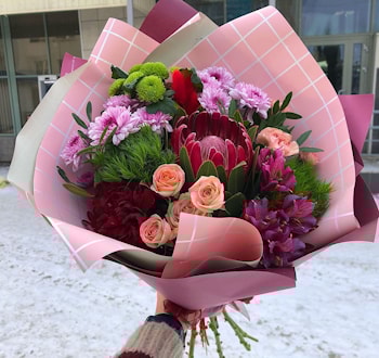 №6 - Супер стильный букет «Дубай» (букет был куплен флористом в Дубае в одном из популярных магазинов, привезен в Беларусь, разобран, изучен и воссоздан заново в том же составе):